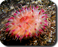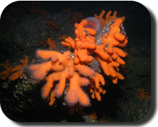 kleine Schwämme am Fels und fast durchsichtige Seescheiden