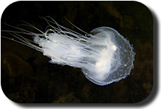 uns trieben auch einige Quallen vorbei. Die große Seestachelbeere,