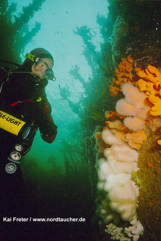 alles und noch mehr kann an der Westküste Norwegens entdeckt werden. Die Bilder wurden noch mit einer analogen Sea&Sea MX 10 gemacht und sind daher qualitativ nicht mit den Digitalfotos dieser Seite zu vergleichen...