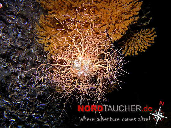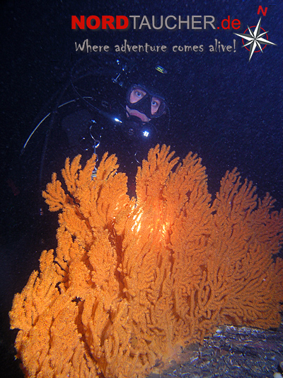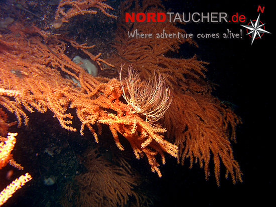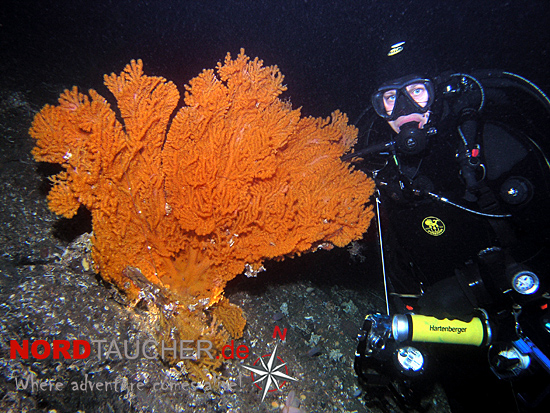 Am Skarnsund sind die filigranen Gorgonien schon ab einer Tiefe von 30 Metern zu bewundern