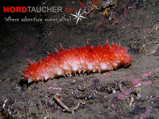 Schwarze Seegurke (einmal mit ausgefahrenen und einmal mit eingezogenen Tentakeln)