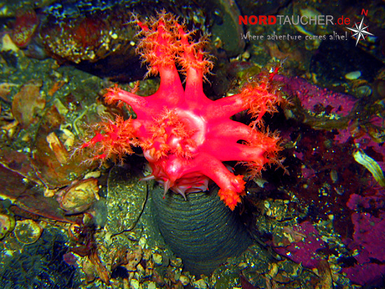Die Weichkoralle "Tote MAnnshand" bildet im Skarnsund dichte Teppiche