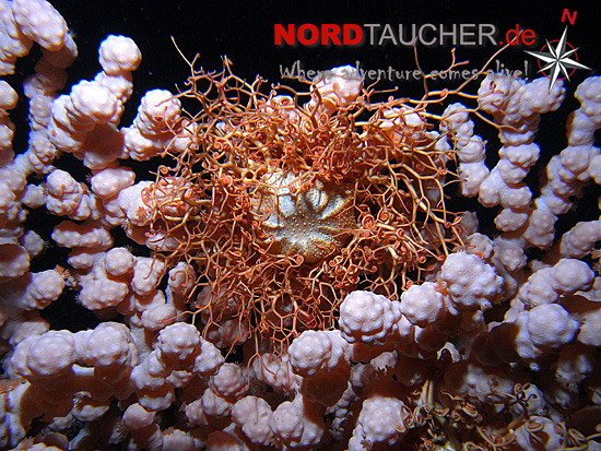 Auf den Gorgonien findet man häufig die Seesternart "Gorgonenhaup",