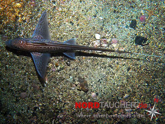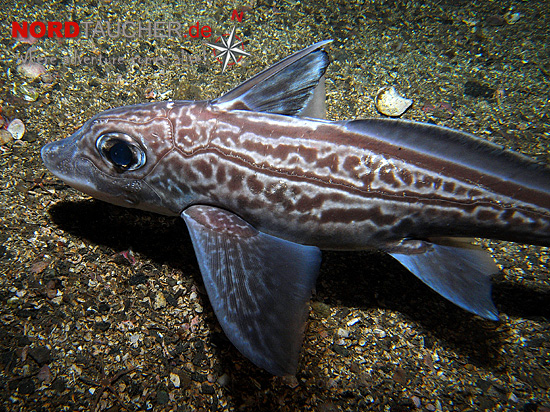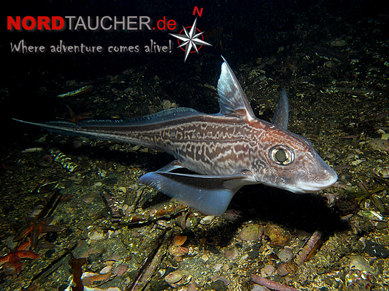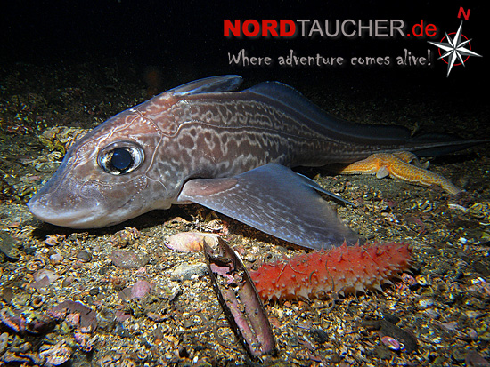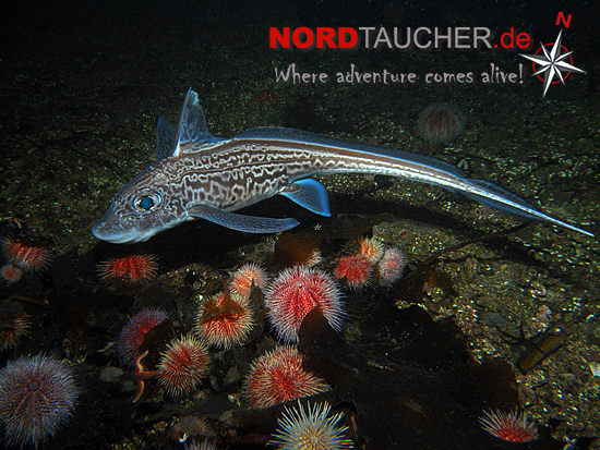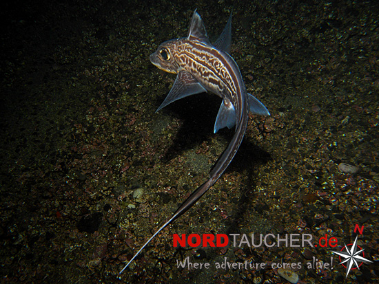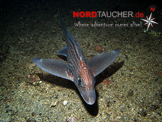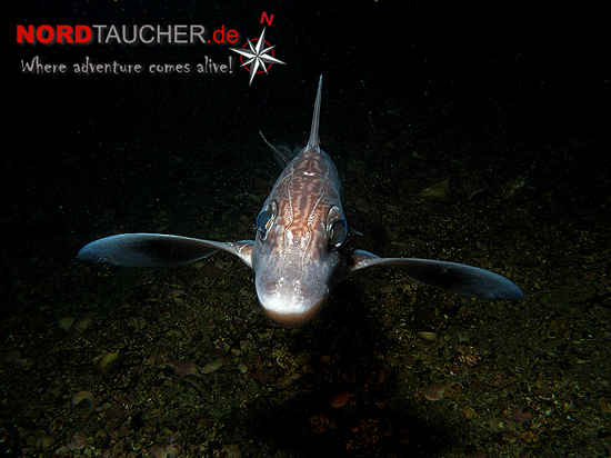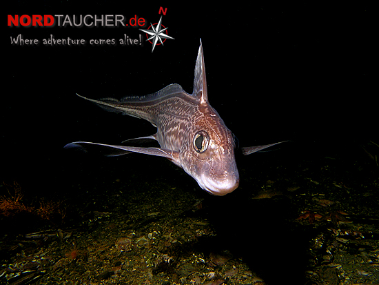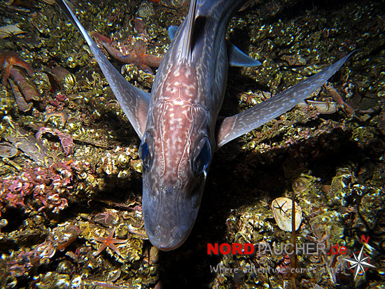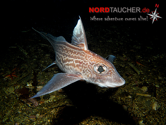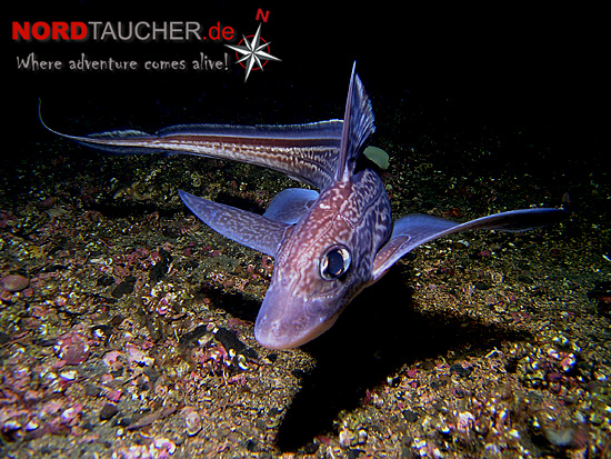 Die Seekatze ist eigentlich ein Tiefseefisch, der Nachts am Skarnsund bei der Nahrungssuche aber auch schon in Tiefen um 10 Meter bewundert werden kann |
