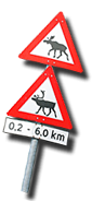 typischer Bewohner der norwegischen Wildnis ist der Elch. Die Verkehrs-Warnschilder