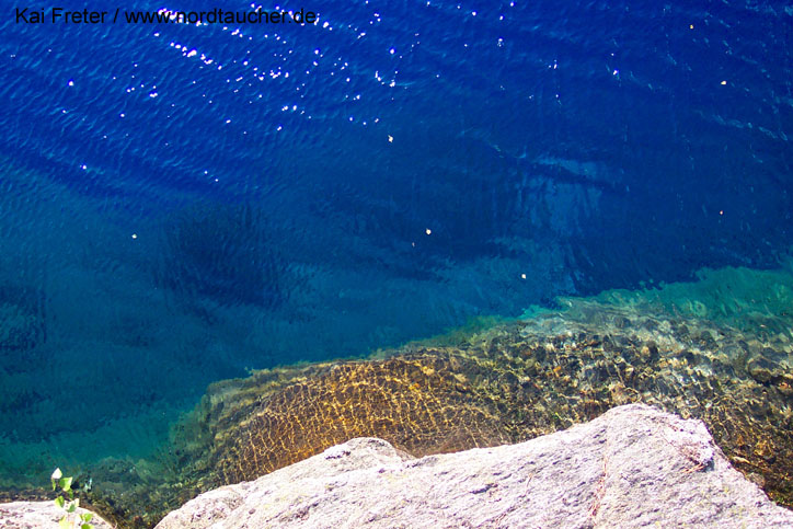 der Oberfläche sieht man den Grund in 40m. Tiefe