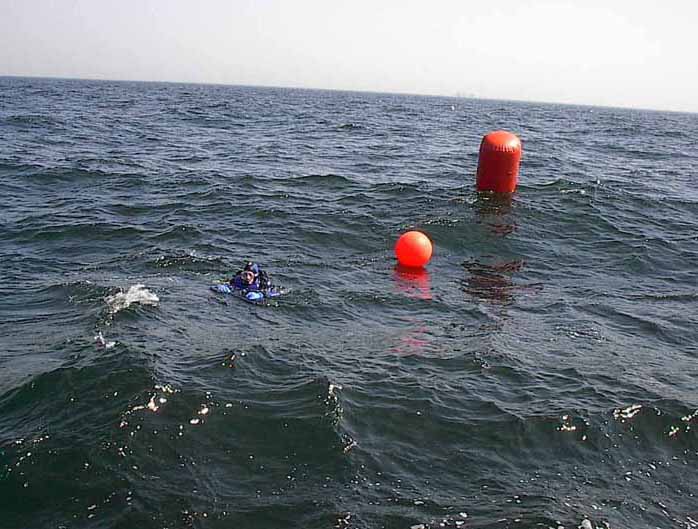 Abtauchen an der Markierungsboje