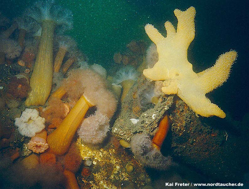 alles und noch mehr kann beim Wracktauchen im Kattegat entdeckt werden. Die Bilder wurden noch mit einer analogen Sea&Sea MX 10 gemacht und sind daher qualitativ nicht mit den Digitalfotos dieser Seite zu vergleichen...